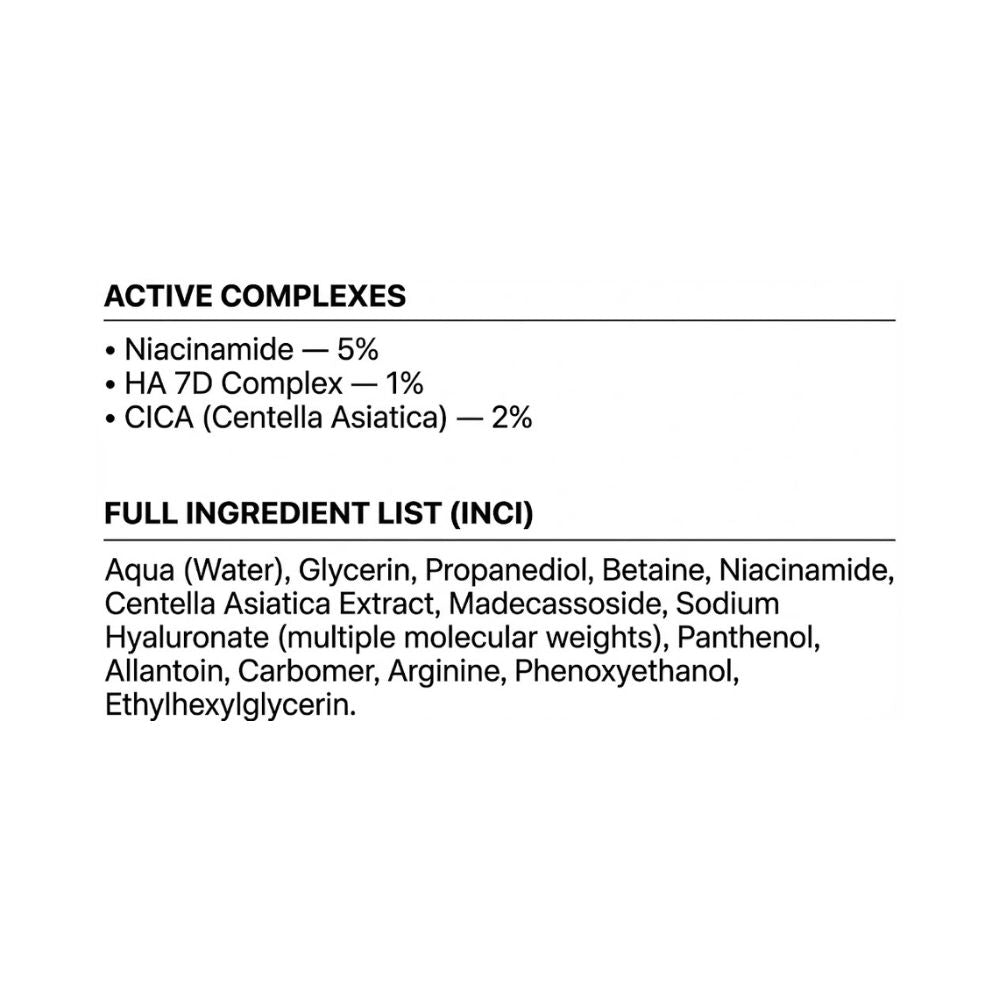 Yes. The Night Repair Serum is universally compatible and dermatologist-aligned. The Niacinamide + CICA + HA 7D blend calms, repairs, and hydrates without irritation. Use it alone or with your moisturizer.